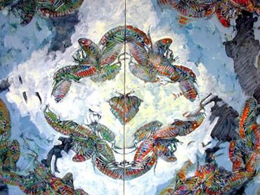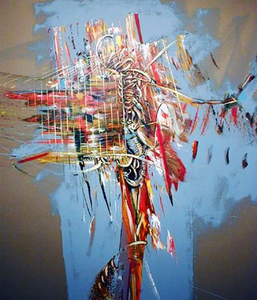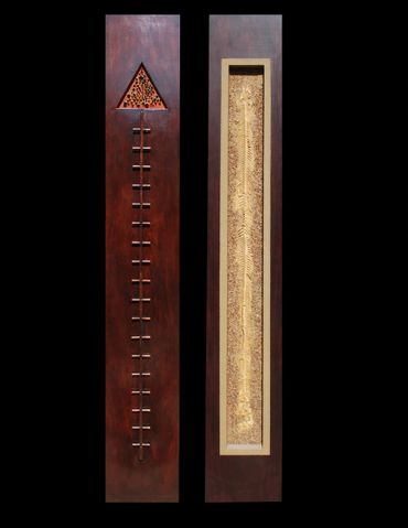 La parte de arriba es iluminada, y se enciende con un botón localizado en la base de la obra a la derecha. La fuente es alimentada por 8 baterías recargables AA (12v.) Busto original realizado por el escultor argentino Carlos Benavidez e intervenida por Pablo Bobbio.