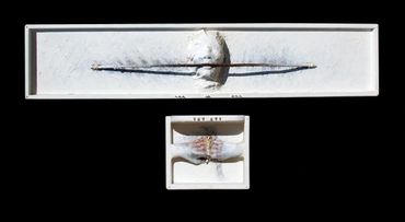 The upper part is illuminated and is turned on with a button located at the base of the work on the right. The fountain is powered by 8 AA rechargeable batteries (12v.) Original bust made by the Argentine sculptor Carlos Benavidez and intervened by Pablo Bobbio.